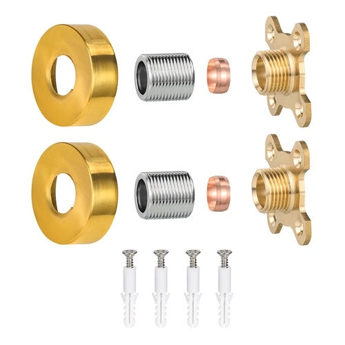 ชุดติดตั้งฝักบัวทรงกลมนี้ใช้สำหรับตั้งห้องน้ำ จุดประสงค์หลักคือเพื่อให้มีฐานที่แข็งแรง แบน และติดตั้งง่ายสำหรับก๊อกน้ำติดผนัง ผลิตภัณฑ์ใช้โครงสร้างคอมโพสิตของทองเหลืองและเหล็กกล้าคาร์บอน: แรงหลักและชิ้นส่วนเชื่อมต่อที่สัมผัสโดยตรงกับผนังและส่วนต่อประสาน faucets ใช้ทองเหลืองเพื่อให้มั่นใจถึงความต้านทานการกัดกร่อนและความแน่นของการเชื่อมต่อในระยะยาว เนื่องจากเป็นโครงสร้างรองรับหลัก ตัวแผ่นจึงทำจากเหล็กกล้าคาร์บอนที่มีความแข็งแรงสูง ซึ่งให้ความแข็งแกร่งในการรองรับที่จำเป็นทั้งหมด และป้องกันการเสียรูปเนื่องจากความเครียดในระยะยาว พื้นผิวของตัวแผ่นผ่านการชุบด้วยไฟฟ้าและกระบวนการอื่นๆ ทำให้มีลักษณะเป็นสีทองและทำความสะอาดง่าย ได้รับการออกแบบให้เป็นทรงสี่เหลี่ยมมาตรฐานพร้อมรูติดตั้งที่กำหนดไว้ล่วงหน้าเพื่อให้เข้ากับอุปกรณ์เสริม faucet ทั่วไป และทำให้กระบวนการติดตั้งง่ายขึ้น