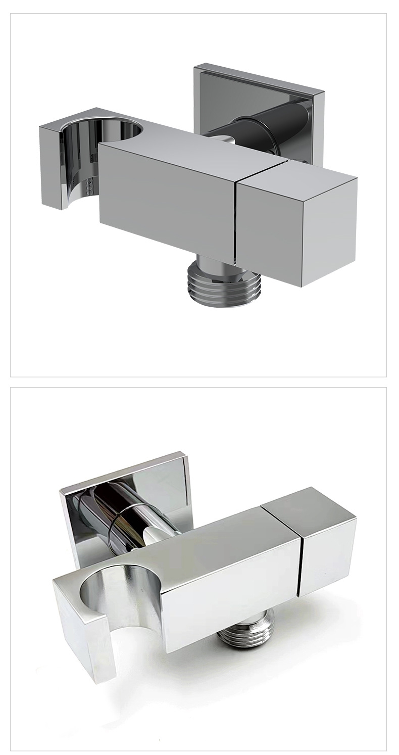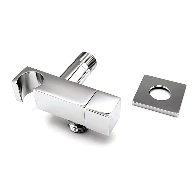 วาล์วสี่เหลี่ยมทองเหลืองหนาหนาพร้อมที่วางฝักบัว, 1/2 "วาล์วหยุดตรงสำหรับสเปรย์โถชำระล้างและฝักบัวแบบใช้มือถือ, อุปกรณ์ประปาในห้องน้ำ